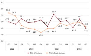 PMI Kanton Schwyz Q3/2025 – Schwyzer KMU: US-Zölle trüben Stimmung der Industrie